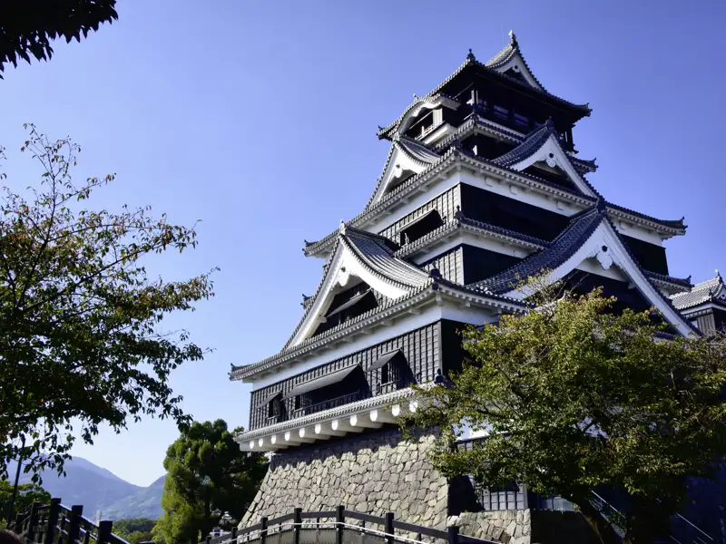Die Koffer schicken wir nach Kyoto voraus, uns bringt der Shinkansen mit unserem leichten Gepäck auf die subtropische Insel Kyushu nach Kumamoto. Hier nehmen wir die Straßenbahn zu einer der beeindruckendsten Burganlagen in Japan. Die mächtigen Türme und schwarzen Steinmauern kontrastieren im Frühjahr aufs Schönste mit dem zartrosa Flor der Kirschblüte. Ihr Scout hält Sie mit der Geschichte um den tapferen Samurai Takamori in Atem. Entspannt tief durchatmen heißt es dann im Suizenji-Garten mit seinen anmutigen Hügeln und Baum-Solitären.