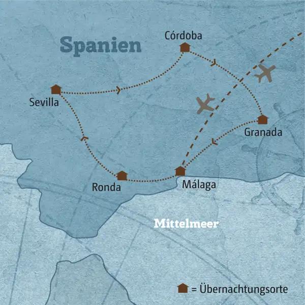 - Wechselnde örtliche, Deutsch sprechende Reiseleitung während der Besichtigungen in Ronda, Sevilla, Córdoba und Granada