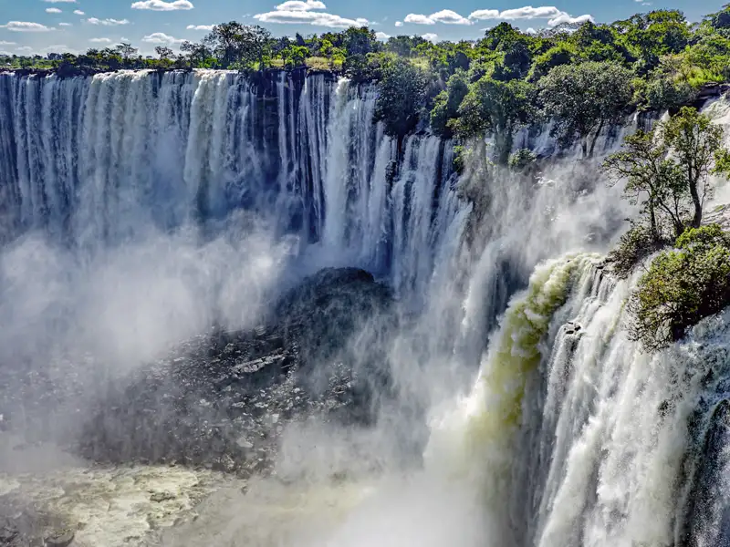 Die Kalandula-Wasserfälle sind die zweitgrößten Wasserfälle Afrikas. Mit 105 m Höhe und 400 m Breite sind sie ein eindrucksvolles Naturschauspiel. Wir blicken von oben auf die Wassermassen. Wer genug Energie hat, kann zum Fuße der Wasserfälle wandern (ca. 45 Minuten, mittel), um das Schauspiel aus nächster Nähe zu erleben. Gegen Mittag Rückkehr zum Resort. Am Nachmittag unternehmen wir einen Abstecher zu den Pungo-Andongo-Felsen. Wie Inseln liegen die schwarzen Felsen in der Landschaft. F/A
