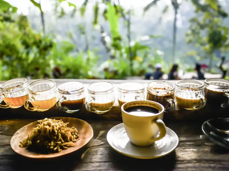 Gezähmter Dschungel rund ums Hotel: Wir streifen durch Reisfelder, Kaffee- und Kakaoplantagen, genießen die Kühle eines rauschenden Wasserfalls – Erfrischung pur! Den Nachmittag verbringt jeder, wie er mag. Sie können auch Ihren Scout zu weiteren spannenden Entdeckungen begleiten (45 €). Der Tempel Ulun Danu scheint auf dem Bratansee zu schweben. Und die Reisterrassen von Jatiluwih verwandeln die Landschaft in ein wahres Kunstwerk.