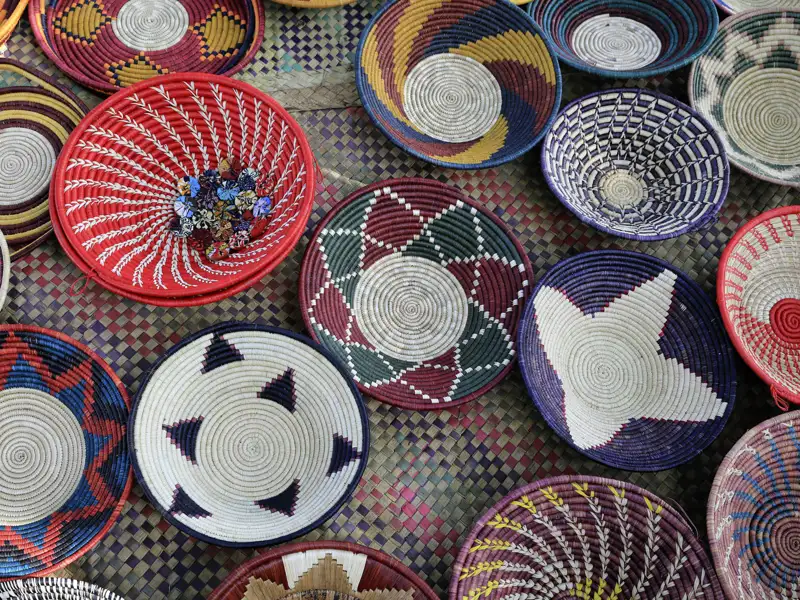 Vormittags sind wir zu Besuch in der Bigodi Women‘s Group. Hier leben rund 150 Frauen und pflegen ihre alten Traditionen und Kunsthandwerkstechniken. Sie rösten und malen Kaffeebohnen per Hand und auch Bananen-Bier und -Gin werden hier gebraut. Wir bekommen eine Einführung in die ursprüngliche Kunst des Körbeflechtens und dürfen uns selbst daran versuchen. Der Nachmittag steht zur freien Verfügung. Oder Sie machen sich zu Fuß auf die Suche nach den Schimpansen im Kibale-Nationalpark (295 €). Zuerst sehen wir den Wald vor lauter Bäumen nicht, während wir uns still den Weg durch den Dschungel bahnen. Die Schimpansen verbringen den Tag hoch oben in den Wipfeln der Bäume. Mit etwas Glück schwingen sich schließlich ein paar Schimpansen an Lianen vorbei, und wir können unsere nächsten Verwandten in ihrem natürlichen Lebens-raum beobachten. F/M/A
