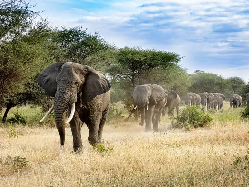 Heute aber: Game Drives am Morgen und am späten Nachmittag in der Serengeti. Wo verstecken sich Simba, Pumba, Tembo & Co.? Wie es sich für gute Großwildautogrammjäger gehört, richten sich unsere Routen nach den Tieren. Und wenn sich Löwe, Warzenschwein, Elefant oder was anderes Spannendes zeigt, machen wir halt, stellen das Hubdach hoch und sperren die Augen ganz weit auf. Location-Wechsel im Laufe des Tages. Unser nächstes Camp liegt im Norden des Nationalparks und ermöglicht neue Perspektiven. Auch in den nächsten Nächten schlafen wir – ganz nah an der Natur – in fest stehenden Zelten.